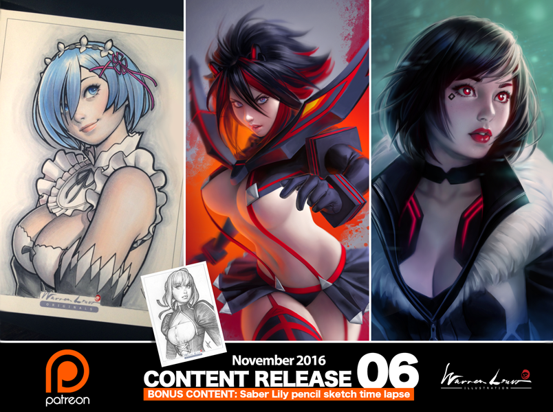 * 1080p Real time and time lapse process videos (.mp4) with commentary (Rem, Ryuko Matoi and Winter lyra).